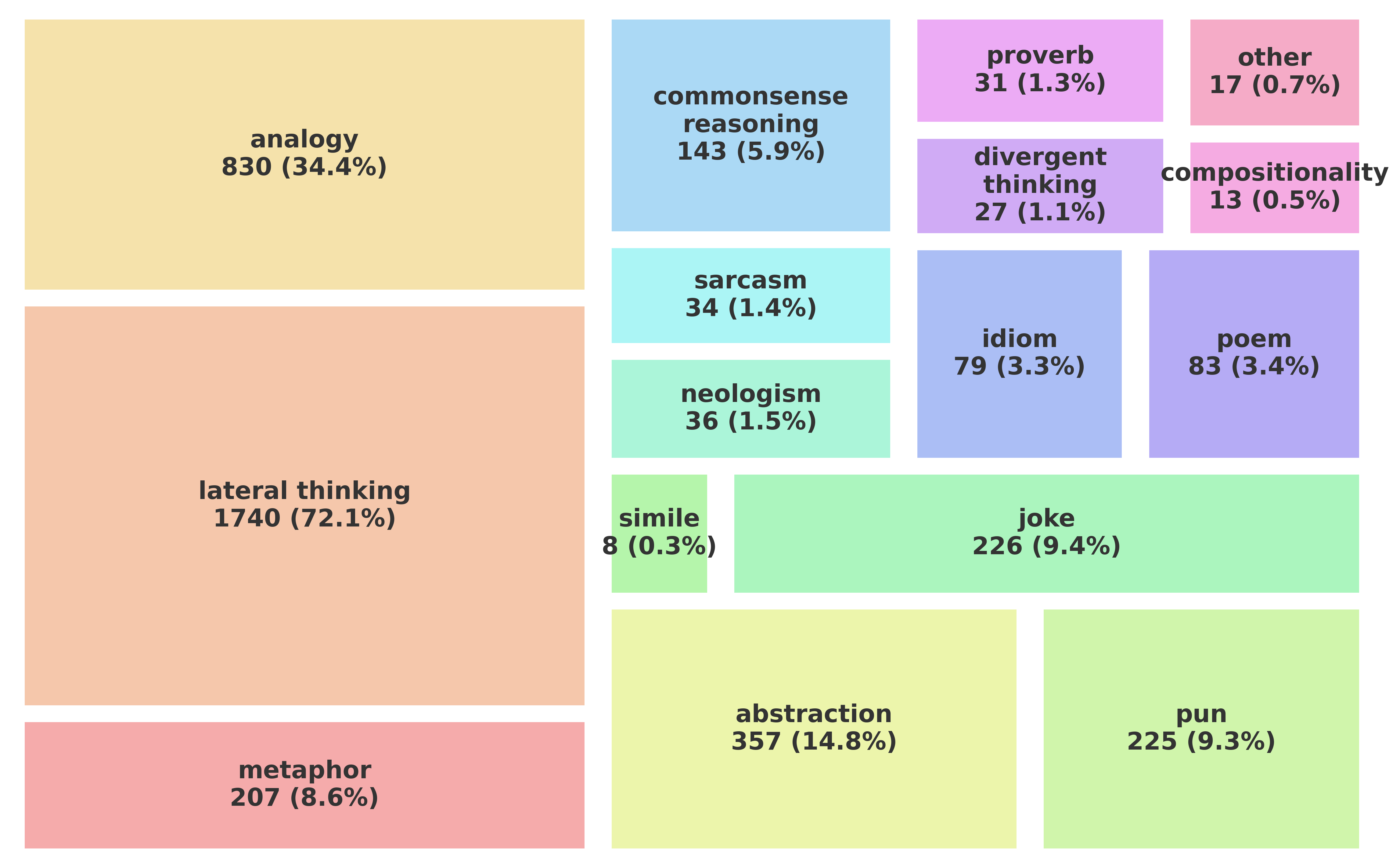 CresOWLve questions also require models to employ a wide range of creative thinking strategies, such as lateral thinking, analogy-making, and commonsense reasoning, to creatively combine the retrieved knowledge and arrive at the correct answer. Additionally, the questions are about several creative domains, such as poetry, metaphor and humor.